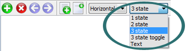 You can create 1-state, 2-state, 3-state and 3-state toggle buttons using Vista Buttons. 1-state buttons are simple static image buttons. 2-state buttons respond to mouseOver event creating rollover effect. Mouse click doesn't change the button appearance. 3-state buttons support both mouseOver and mouseClick event. 3-state toggle buttons additionally stick in the pressed state after a click.